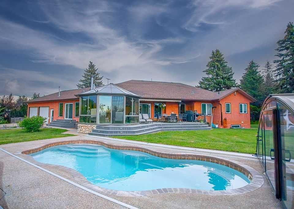 Stunning Acreage Retreat in Beaver County – Luxury Meets Country Living! A truly exceptional 11.5-acre property offering the perfect harmony of upscale comfort and peaceful rural living. Located just minutes from Viking, this custom-built home is ideal for those seeking space, privacy, and an elevated lifestyle surrounded by nature. As you enter through the private electronic gate, you’re greeted by a beautifully landscaped yard filled with mature trees, vibrant gardens, and a tranquil sense of seclusion. Thoughtfully designed for both relaxation and function, the property includes cross-fenced pasture, ideal for horses or other animals. A large heated quonset provides ample space for a workshop, storage, or hobby space, while a heated greenhouse with its own water supply extends the growing season well into Alberta’s cooler months. The outdoor living space is truly spectacular. An expansive composite deck features a natural gas hookup and a 16-foot electric retractable awning, making it the perfect setting for outdoor dining and entertaining. Gather with friends and family around the stunning stone-surrounded outdoor fireplace, or stroll through the irrigated vegetable and herb gardens, flowerbeds. Inside the home, you'll find over 2,450 square feet on the main level, plus a fully developed basement and a beautiful 250 sq ft four-season sunroom. The open-concept floor plan is ideal for modern family living, featuring a chef’s kitchen with stainless steel appliances that flows into a spacious dining area and cozy living room. With five bedrooms and three and a half bathrooms, there’s room for everyone. The generous primary suite includes a walk-in closet and a spa-like ensuite with a jetted tub. The basement is built for entertainment and comfort, with a home theatre complete with a 120” projector screen — perfect for movie nights or sports fans — as well as a cold room, storage area, and dedicated home office. Comfort and practicality continue throughout the home with forced-air heating on the main floor, in-floor heating in the basement, central air conditioning. The attached two-car heated garage with a central drain is complemented by an additional two-vehicle carport. One of the crown jewels of this home is the high-end, four-season sunroom — 225 square feet of in-floor-heated space with a wood-burning fireplace, offering a cozy, light-filled retreat year-round. Just steps outside, enjoy your very own inground, heated saltwater pool complete with an automated cover, retractable dome, and insulated lines — allowing for all-season enjoyment and minimal maintenance. Property also features a secondary residence, with very minimal work this could be a great space for a nanny or caregiver. This one-of-a-kind property offers a rare opportunity to live the acreage lifestyle without compromising on quality or convenience. Whether you’re raising a family, entertaining guests, or simply seeking serenity in nature, this home truly has it all.