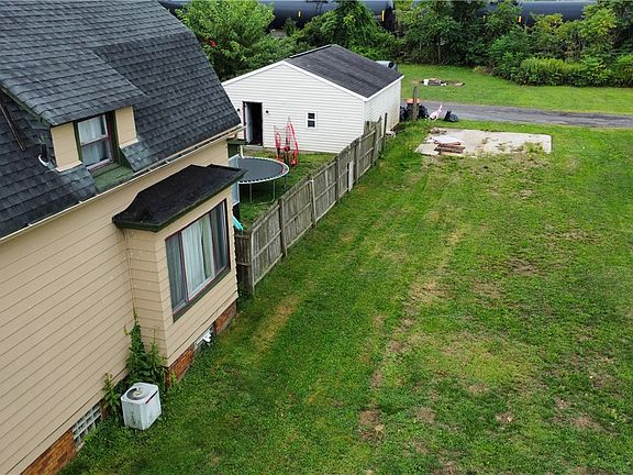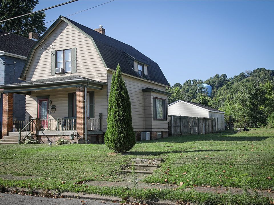 If convenience and space are the two words that matter to you, then 4733 5th Ave in Beaver Falls is for you. Just 1.4mi from Geneva College and 1.5mi to the I-376, this 3 bedroom, 2 bath dutch colonial brick home comes with two bonus lots: a 5,227 sqft lot next door and a 3920 sqft rear lot which abutts railway tracks—a quarter acre in total. This 1 1/2 story home features a spacious living room and dining area and a galley kitchen that empties onto a fenced in back porch, and a detached garage beyond that. Upstairs there are two bedrooms, one of which has a bonus room and an ensuite master bedroom. While in the finished basement a Pittsburgh potty has been upgraded to a full bathroom and bedroom as well as a laundry room. Out back sits a detached garage, emerging from its second life as a man cave.