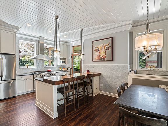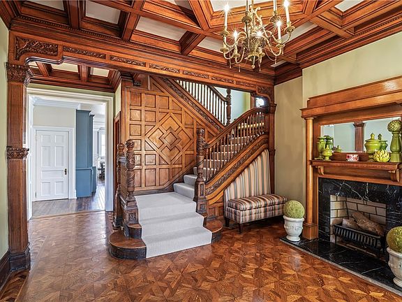 Amazing home in top notch conditon! Step through the vestibule into its grand entry to admire parquet floors & boxbeam ceilings. 'The turret'. Formal LR & adjacent casual family rm both w/ gas fps. Stunning DR has built-in hutch with wine fridge. Amazing kitchen across back of house: marble tiled backsplash, pendant lights, banquette seating, mudroom access. New carpeting on stairs & 2nd flr. Original stained glass window at landing. 2nd floor suite with huge bedroom, closet & bath including clawfoot tub + separate shower & 2 addt'l brs, laundry & hall bath. 3rd flr has 2 more bedroom & full baths + office & readily accessible storage. Outdoor urban oasis! Remote-controlled gate at driveway leads to detached 2-car garage & breath-taking private enclosed yard: mature perennials, uplighting, new expanded rear deck with built-in gas firepit, fans, grill & sunken hot tub. All a short walk to Walnut St shops, Carnegie museums, PITT & CMU, UPMC hospitals. 240v car charger!