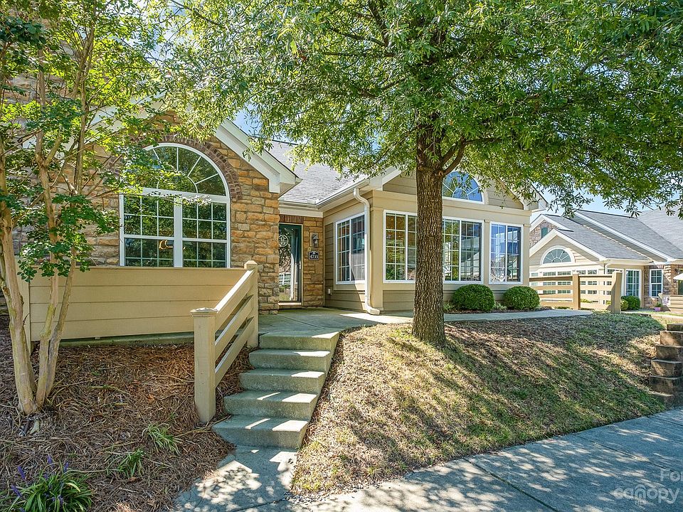 Welcome to Ridge Road Villas! Step into a bright and open layout boasting 3 bedrooms and 3 full bathrooms accompanied by an airy sunroom and office/flex room with French doors. Not to mention, the vaulted ceilings and modern light fixtures throughout the home. Find the primary bedroom on the first floor with en suite bathroom and walk-in closet. The kitchen is tastefully updated featuring quartz countertops, designer tile backsplash, cabinet lighting and pullouts, stainless steel appliances, induction double oven range, large undermount workstation sink, mini wine fridge, and even a solar tube! There is plenty of storage with two pantries in the kitchen. Large laundry room with custom cabinets, utility sink, and huge storage closet. A two-car garage with epoxy flooring and hand-painted mural is conveniently attached. Located just a short walk to the community pool and clubhouse with a fitness center. Near shopping, restaurants, entertainment, and major highways. This home has it all!