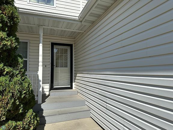South Fargo 2-story, 3 bed, 3 bath twin home. The main floor features vaulted ceilings, a semi-open layout, and a primary bedroom with a private full bath, walk-in closet, and additional closet. Convenient laundry room and half bath are also located on the main level. Upstairs offers two additional bedrooms and a full bathroom. The unfinished basement includes an egress window and is ready for future expansion. Exterior highlights include a double-stall attached garage, fully fenced yard, patio, and ample green space. Home is being sold as-is and is priced to reflect updates needed. A great opportunity to build equity in a desirable location.
