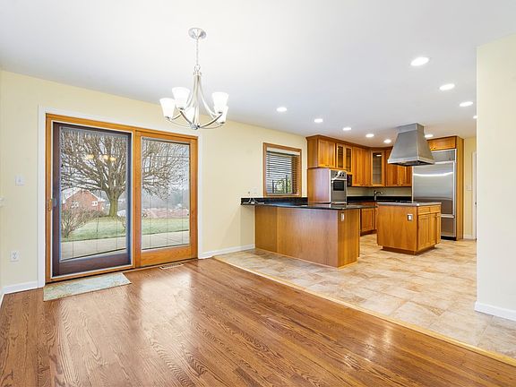 Pristine brick ranch with gorgeous updates, dual laundry areas and desirable location. TONS of hickory looking cabinets with rich black granite counters/breakfast bar with enough seating for 6,double oven with warming drawer, cook top with hood, sub zero refrigerated GORGEOUS picture window, door to exterior, open staircase to the lower level & tons of recessed lights opening to the nice sized dining room. STUNNING hardwoods throughout most of the main living space, BEAUTIFUL corner fireplace and bay window in living room, 2 great sized bedrooms, FANTASTIC updated main bath w/huge walk in shower and double bowl sink, stackable washer & dryer in hall. ENORMOUS finished lower level with LVP flooring, updated full bath, 2nd laundry room, fireplace, storage area. AMAZING level rear yard with a HUGE patio and sidewalks around side.