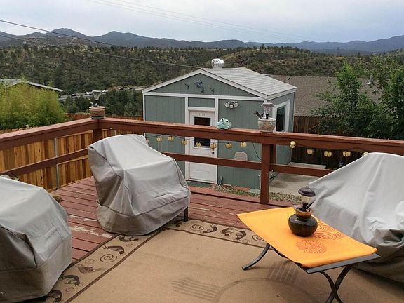 Cute home on paved road with large backyard and wonderful views. Two large bedrooms, kitchen with large pantry and separate dining room. Stove in spacious living room. Oversized laundry room could also accommodate small office. One car garage and storage shed. Great backyard with roomy deck and lovely views.