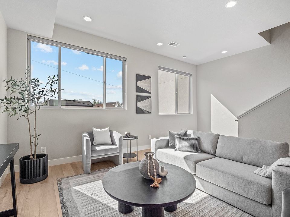Discover this move-in-ready townhome in one of the best neighborhoods in Denver that offers both suburban and urban amenities. Located just off I-25, you'll enjoy easy access to both downtown and the DTCwhether you're driving or hopping on the nearby light rail. Outside, enjoy a low-maintenance yardperfect for a quick BBQ or giving your pup a break between Zoom calls. Plus, you're just blocks from the upcoming Bethesda Park project, which will bring a brand-new community park and playground to the neighborhood. Step inside to find a versatile room with its own en-suite bathroomideal for a home office, guest suite, or both. Just down the hallway, you'll find convenient access to the attached two-car garage. Upstairs, the spacious main level features an open-concept layout that truly sets this home apart. The living and dining areas are both generously sizedsomething many other townhomes can't match. The sleek kitchen is a standout with quartz countertops, stainless steel appliances, a new fridge, and a large island ideal for entertaining. At the far end of the living area, large west-facing windows frame stunning mountain views. Head upstairs to find brand-new carpet and two spacious bedrooms, each with its own ensuite bathroom. The primary suite features a walk-in closet, double sinks, a spacious shower, and even more oversized windows to soak in those mountain views. For added convenience, the laundry closet is located on the same level as the bedrooms. The photos don't do this justice. Book a showing today!