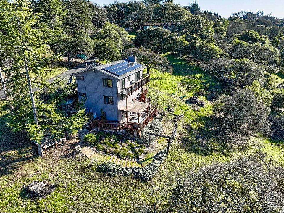 Spectacular views and privacy surround this Bennett Valley home.Country setting while just 10 minutes to Safeway shopping center. Included in the offering is a 1.02 acre parcel adjacent to the home that could potentially be a home site, pool site, or just held as a buffer. Total of 2+ acres. Brand new flooring and fresh interior paint throughout the house.Remodeled bathrooms, remodeled kitchen with granite countertops, SS appliances including an induction cooktop made in Italy,and a water softener. Fully paid $43,000 solar system with a backup battery and tesla plug. New water heater with a heat pump. Newly paved driveways. Two car attached and one car detached garage, a bonus room and an office downstairs. Multiple decks, hot tub, kids play house. New septic pump.Strong well water. Majestic oaks, raised bed gardens, and natural beauty. Wine country living at it's best. Come and enjoy!