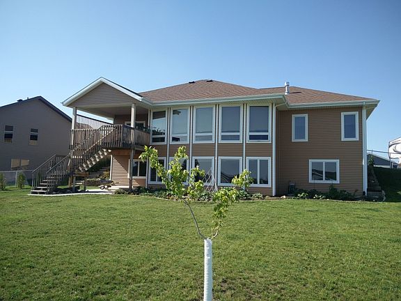 OPEN HOUSE SUNDAY SEPTEMBER 17TH FROM 3-4:30! Don't miss out on this well designed custom ranch style home offering a comfortable open plan with many unique details. The kitchen, living & dining room features a stunning bank of windows along a softly curved wall that repeats itself in the huge lower great room. The large kitchen has a huge curved breakfast counter, gas range, all whirlpool appliances & rustic cherry custom cabinets. The living room fireplace has built in bookshelves & natural stone hearth that completes this comfortable space. The owner's suite includes a private bath with separate vanity sinks, private toilet room and a large walk-in closet. The laundry has access from both the main hallway and master closet. The full walkout lower level has 3 additional bedrooms & full bath. The fully finished 3 stall garage features an EnerRadiant garage heater. Triton AirBear HVAC system, recirculating water pump & AprilAire humidifier. NO SPECIALS!