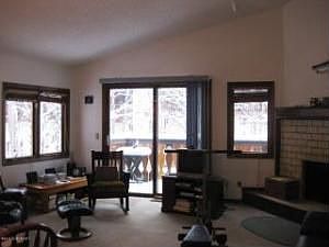 Top floor end unit with private deck in this very wooded setting near trail abutting trail system. Vaulted ceilings and fireplace in living room. Open and airy feeling. New dishwasher, newer range. Detached carport. Dues of $160.70 include exterior maintenance, grounds maintenance, water, sewer, refuse, snow removal, insurance and common area electric. Unusually private location for condo project!