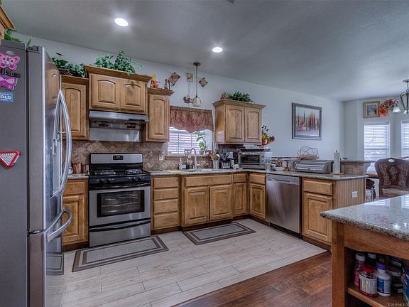 Corner lot with a great sunroom off the back. Fully fenced yard. Vaulted living room with fireplace. Granite counters and stainless steel appliances. Bullnose corners and arches. Master bedroom, private bath with whirlpool tub, separate shower, his/her sinks. All new flooring throughout.