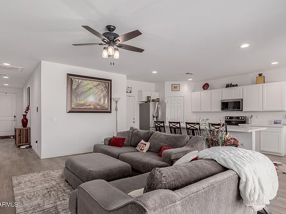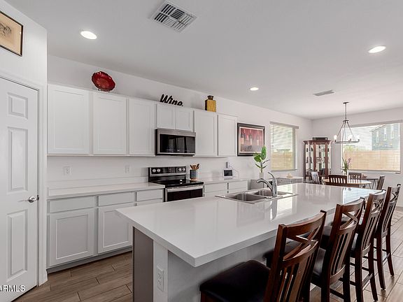 Home comes w/a 2-1 INTEREST RATE BUY DOWN FOR THE BUYER!(Terms apply) - Enjoy the amenities of The Mark (Pool), Bus Stop (Community Center), The Farm and more! Prepare to fall in love w/this beautifully maintained 3-bed, 2-bath home w/PREMIUM OVERSIZED LOT WITH PRIVACY WALLS, IDEAL FOR A POOL, DECK, BBQ & LANDSCAPING, PLUS A LUSH PARK ACROSS THE STREET and a 2-car garage in EASTMARK! BONUS - HOA TAKES CARE OF THE FRONT YARD! Inside, find a perfectly flowing open floor plan, w/WOOD LOOK TILE FLOORS, abundant natural light, ceiling fans throughout, & MULTI SLIDING GLASS DOORS to the back patio, seamlessly blending indoor-outdoor living. Spotless kitchen comes w/recessed lighting, a pantry, STAINLESS STEEL appliances, white cabs, QUARTZ COUNTERTOPS, & a CENTER ISLAND, providing extra space for meal prep. Retreat to the primary bedroom, complete w/ plush carpet, a privatebathroom w/dual sinks, & a walk-in closet. Don't let this opportunity slip by!