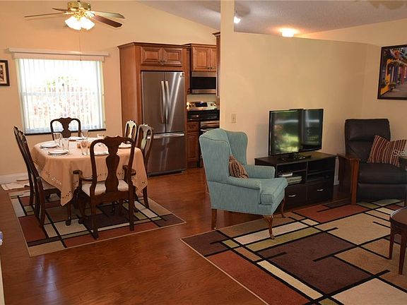 • Interior Features: Ceiling Fans(s), High Ceiling(s), Master Bedroom Downstairs, Open Floorplan, Stone Counters, Walk-In Closet(s), Solid Wood Cabinets, Thermostat, Living Room/Dining Room Combo, Window Treatments, Vaulted Ceiling(s), L Dining