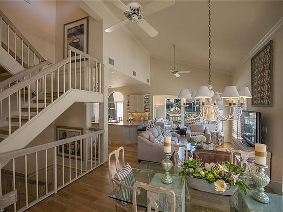 BEACH FRONT WITH PRIVATE BEACH ACCESS!!! Welcome to paradise in your unique, gated, beachfront 2 bedroom plus den, 3 full bath home with only 28 Villas in the heart of town. 3 spacious levels with a built in elevator servicing all floors. Updated kitchen with a pool view and beautiful granite counter tops, Bosch appliances, and wood floors throughout. Living room takes in plenty of sunlight throughout the day, has vaulted ceilings and looks out to the pool and beautifully manicured community landscaping. The den on the main level can be multi purposed for extra guests and has a built in desk, bookshelves and day bed. 2nd floor bedroom has its own private bathroom, washer and dryer, more storage and closet space. 3rd floor has a large master suite and bath with plenty of closet space and storage. Ground Floor consists of 2 car garage and a fully renovated enclosed lanai overlooking the pool. Storm protection has impact windows and shutters. This community is pet friendly with approval. Venetian Village is steps away with waterfront dining, shopping and boat docks.