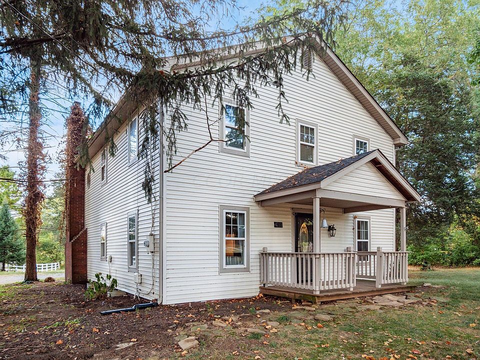 Charm and character abound in this beautifully updated and maintained 4 bedroom 2 bath home situated on over 1.5 acres. Open first floor has tons of windows which creates a light and bright space throughout. Stunning kitchen with wood beam and brick accents features huge center island with butcher block top perfect for all your food prep needs. Second floor offers gorgeous primary suite with spa like primary bath and large walk in closet, along with 3 more spacious bedrooms. Two laundry hook-ups; second floor and basement. Outdoor the property has tons to offer with beautiful patio, fire pit, oversize garage, and additional climate control building with endless possibilities. Enjoy the privacy of rural living with easy access to urban conveniences. HSP Home Warranty already in place!