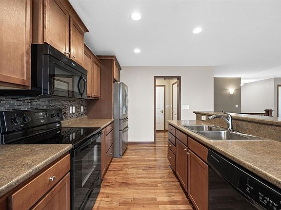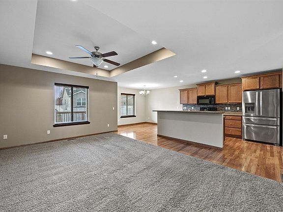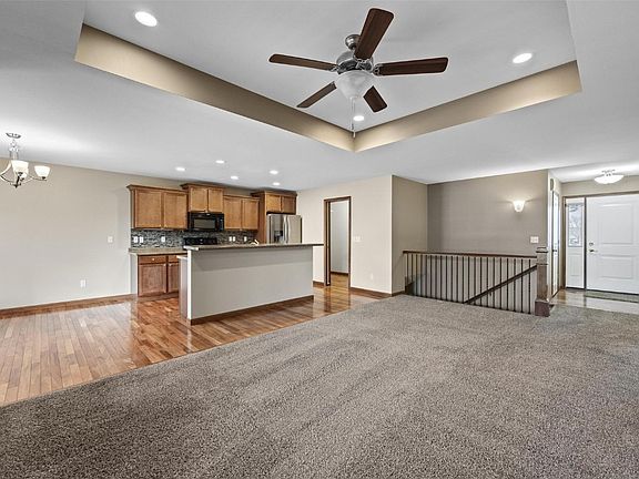 Discover this well-maintained home featuring a spacious open floor plan, perfectly suited for comfortable living and entertaining. With 4 bedrooms—2 on the main floor and 2 in the finished basement—plus 3 full bathrooms, including an en suite off the primary bedroom, this home offers both style and functionality. The kitchen boasts beautiful hardwood floors, a breakfast bar, and a dining area, creating a welcoming space for meals and gatherings. The finished basement includes a large family room, ideal for movie nights or entertaining guests, with a pool table that’s negotiable. Step outside onto the deck, perfect for enjoying warm summer evenings. The home’s exterior features vinyl siding and a 2-stall garage for added convenience. Located near Viola Gibson School, shopping centers, and medical offices, this home combines comfort with a prime location. Buyer to verify all measurements