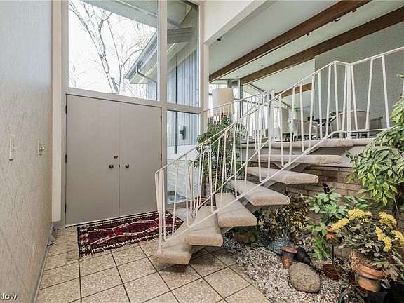 Embrace Light and Location in this Mid-Century Modern Oasis. Designed by the well known architect Bob Forsythe (architect for the Football Hall of Fame in Canton, Ohio), this One owner custom built architectural gem has been lovingly cared for. Situated on a wooded 1.6+ Acre lot (offers an additional building lot or space to add a pool or gardens), in the Plain Local School district, this beauty offers a unique blend of classic mid century modern design with all the comforts of contemporary living. Step through the front double door entry and be greeted by a stunning 2-story foyer bathed in natural light. The centerpiece of the home is the Great room, featuring a dramatic wall of windows that seamlessly blends the outdoors in. Vaulted ceilings with wood beams add a touch of warmth and character. The light-filled, eat-in kitchen features an island, double wall ovens, and an abundance of cabinets to ensure a well-organized space! Also on the main level you’ll find a dining room, and family room with fireplace and sliding doors to the patio. The unique split-level floor plan offers endless possibilities for everyday living and entertaining. This home offers 4 bedrooms, and 3 ½ bathrooms, including an owner’s suite with a very spacious en-suite bath and oversized walk-in closet. Furthermore, the lower level Rec room provides the perfect escape for movie marathons, epic game nights, or simply a quiet space to unwind. In addition, the oversized attached garage could accommodate all of your cars and/or toys. Offering ample living space and a versatile layout, this home is a must-see!