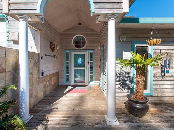 Ocean views!!! Sits high at elevation of 120 feet- above the wetlands for privacy and maximized views. Cozy and bright beach home at the end of the private drive. Furnished and turn key ready for investment income, yet in a neighborhood of mainly owner occupied homes. Floor to ceiling windows and two decks of views, Marquis Spa on upper deck and Sauna on lower, sits above the protected estuary/wetlands.