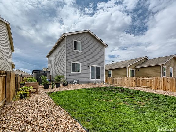 Don't Miss Out!! This perfect 2 story home built in 2018 is located in the friendly neighborhood of Bennett Crossings. The large landscaped backyard will whoo you! The open living area is great for entertaining. The kitchen offers great appliances including a gas range stove, microwave and dishwasher. The home includes smart features including smart locks, and a smart thermostat. The upstairs offers 3 spacious bedroom with great storage space and a laundry room with front loading washer and gas dryer. This home is ideally located within minutes of King Soopers and lots of new commercial buildings. Also, offers easy access to major highways and DIA. Hurry, book your showing today!