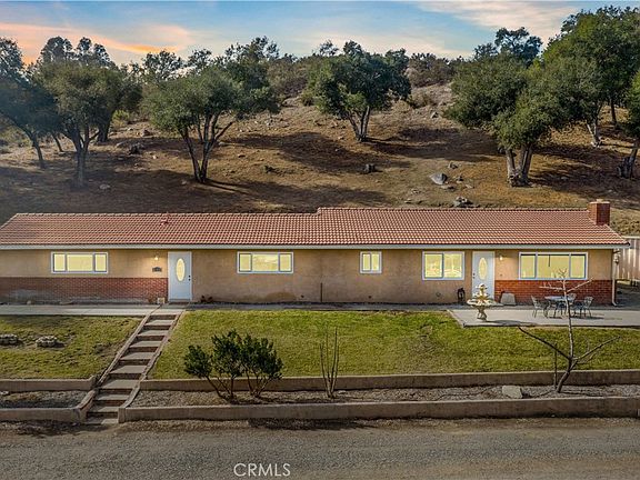 **Rare** Very private home with no neighbors is a rare find in South Temecula. Situated near Pechanga Resort, Patricia H. Birdsall Sports Park, and feeds into the award winning Great Oak High School! This unique gem offers an amazing opportunity for investors as well as owner-occupy buyers. The 1.5 sprawling acres are meticulously maintained, featuring plenty of room for toys as well as RV parking, which is complete with full hook-ups! Carpet and tile flooring throughout, crown molding, refaced cabinets and recently updated windows are just a few of the things that make this single level ranch home so special. Inside, you'll be greeted by a large family room featuring a cozy brick fireplace and large picture frame window that provides ample light. This area of the home flows seamlessly to a dining room that offers plenty of room for family meals. Just beyond a peninsula bar you'll find a chef's kitchen boasting plenty of counter space, beautiful maple cabinets with custom hardware - all accented by ceramic tile counters and backsplash. The main suite is a sizeable room and features a private bath with walk-in shower and dual sink vanity. Down the hall you'll discover two additional bedrooms complete with large closets and plenty of room for a growing family. A single car garage is temperature controlled and is a fully furnished space, making it easy to convert to additional living space. Additionally, this floorplan lends itself to easy duplex conversion **perfect as is but has many opportunities for income generation** Priced to sell! NO HOA! Low tax!