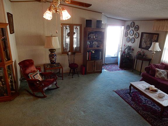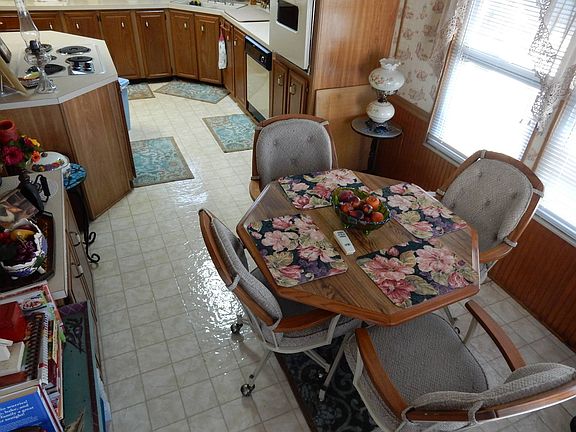 Looking for a spacious home to enjoy the Florida lifestyle, look no further. This 2-bedroom, 2 bath 26' x 57' double wide is in a very active but quite gated in a 55+ community in a safe and desirable area that is pet friendly. Located close to I-75. Lovely 1987 Palm Harbor partially furnished double wide on corner lot with side by side carport and is newly painted (2020). Living room is carpeted and flows into the dining area for more space. Dining room has built in cabinet for storage and beautiful, large china cabinet. Sliders lead to carpeted lanai with vertical blinds and separate A/C unit. Large tiled kitchen has eat in area and ample cabinet space. Both bedrooms are carpeted and master has en-suite that boasts double sinks, step in shower, tiled floor, garden tub, and lots of cabinet space. 2nd bathroom has step in shower and tiled floor. Toilets have been replaced in both bathrooms. Laundry room has additional desk area for computer or work area. This home also has double pane replacement windows with custom blinds, custom insulated glass and stained glass front door, and 2 sheds. Roof was replaced in 2013 and A/C replaced in 2016. Come tour this home today before it's gone!