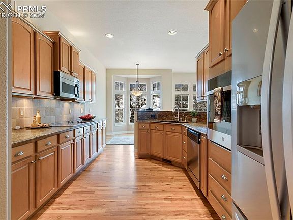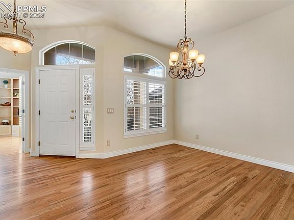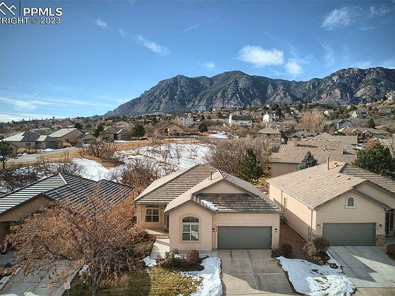 Wonderful Patio/single family home with stunning Cheyenne Mountain Views. Backing to open space and tucked away in popular Broadmoor Park this immaculate home is a hard to find all main floor living floor plan. The open sunny bright floor plan flows with hardwood floors from large formal dining area to kitchen and large family room with fireplace. The main level also boasts a large quiet master bedroom with mountain views and 5 piece bath to include double vanity and soaking tub. There also is a 2nd bedroom/office with full bath. Enjoy beautiful plantation shutters on newer windows. Great for entertaining, the kitchen has ample 42 inch cabinetry, stainless appliances and breakfast bar opening to eating nook and large family room with stunning mountain views overlooking two patios. Entering the lower level the large game room offers endless possibilities along with 2 oversized bedrooms and full bath. A massive storage area enhances the pluses this incredible patio home offers. Minutes to shopping, restaurant, schools and Fort Carson this is the home you have been waiting for!