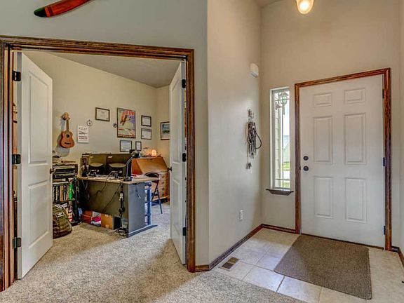 Sweet 3 bedroom single level rancher in Post Fall's Foxtail neighborhood! Tiled foyer welcomes you, office/den with double doors for flexible use. Living area features vaulted ceiling and lots of windows for a bright and airy ambiance. Beautiful mountain views from the many windows! Spacious open kitchen with breakfast bar, stainless steel appliances, gas range,custom pendant lights, and dining area looking out to back yard & mountains. Master suite has private bath with double sink vanity. Laundry/mudroom leads to 2 car garage. Fenced backyard with covered patio. This house was built in 2013 and shows like new!