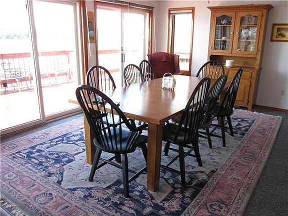 Lots of room to roam in this 2700sq' yr. round home/50' of lakefront. Fabulous views & dramatic sunsets. Decks on 3 sides,4 BDRMS, 2 1/2 BA, gas frpl, oak kitchen, fam RM/2nd kitchen that walks out to brick patio area, & cent. vac, finished 3rd fl (not heated) offers many choices: summer sleeping, game or play RM, convert to Master suite or storage, all appl incl, shed & dock. Low Maintenance. Priced to sell.