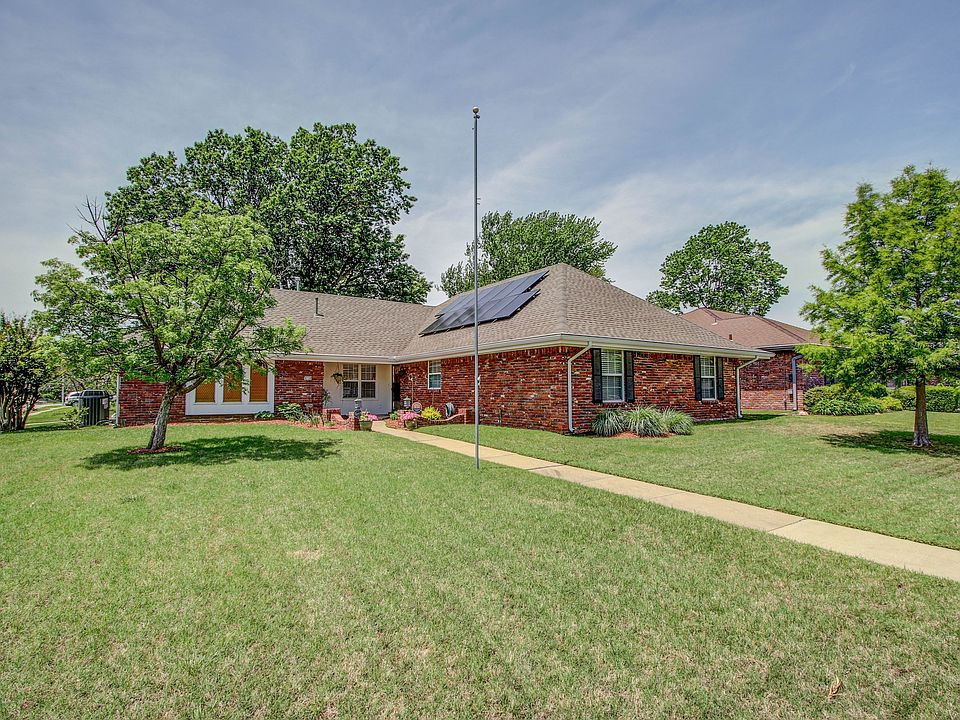 Amazing brick home on corner lot in established & convenient neighborhood. Solar panels ($29,000) installed in '21. Fresh interior paint, LED light fixtures, ceiling fans, guttering, leaf guard covers & HVAC. Amazing new shed, above ground pool, extended patio. New blown in insulation & ductwork. Neighborhood pool. 2 living & dining areas, great for entertaining! Offering a 1 yr home warranty.