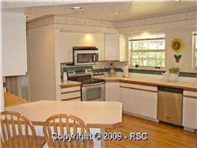 Custom home on 2.5 acre private lot with trees & Pikes Peak Views * Spacious bright & open floor plan * Kitchen features hardwood floors, stainless steel appliances, breakfast bar, & lots of storage space * Main level mother-in-law apartment with separate full kitchen, living room, bedroom, & bathroom * Oversized detached 3 car garage with large unfinished loft above * Upgrades include newer vinyl windows, newer roof, newer tile floors, & updated bathroom with jetted tub * Too much to list, a must see!