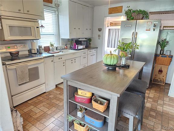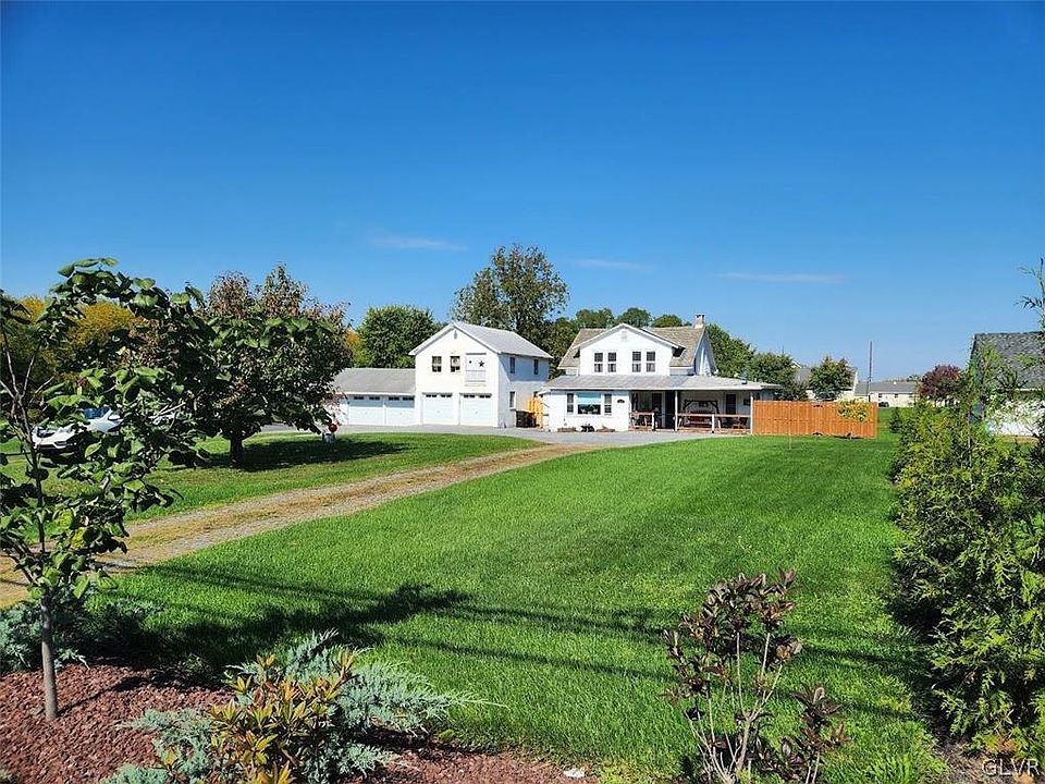 Three Bedrooms, East Penn Schools, with HUGE 5 car, Two Story Garage on over 1/2 Acre. This charming farmhouse style home has a warm & inviting feeling. An open concept, flowing 1st floor plan is awash in natural light throughout, with new laminate flooring, a large country kitchen with abundant cabinetry & shelving. Other notables include energy efficient replacement windows, modern bathroom, covered front porch and more. 1st floor bedroom & bathroom (for 1 level living if desired) with 2 more bedrooms and den area upstairs. Comfortable rooms sizes. Large rear room for use as a pantry & laundry room exits onto a secluded, private deck for outdoor entertaining, plus another fenced side yard for fun and frolic. The property has well thought out landscaping w/foliage for visual appeal & privacy. The garage has 5 bays with new garage doors & over-sized space. Upstairs is a large studio/workshop that can be used for many purposes including some businesses (see local zoning ordinances).