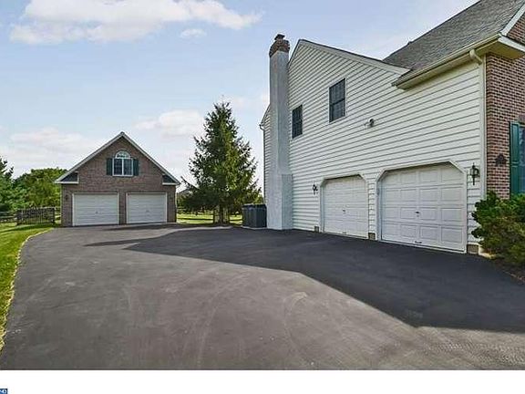Remarkable features...4 car garage, beautiful 2+ acre lot with PUBLIC sewer and over 4000 sq feet of living space! This stately brick colonial perched on a hilltop lot is located in desirable Central Bucks SD. Enter the 2-story grand foyer with turned staircase ,hardwood floors and beautiful millwork. The first floor presents a library, living room and a formal dining room all newly painted in neutral tones. Relax and unwind in the freshly painted cheerful sunroom loaded with windows and views of the spacious, private yard. The traditional kitchen with an abundance of cherry cabinetry, granite counter tops, deep sink, tiled backsplash, double wall ovens and center cook island will delight the chef! The breakfast area presents sliders to the delightful two-tiered maintenance free deck. Bring your binoculars to view the abundance of gold finches sweeping in and out of the yard. Enjoy the evening relaxing with a glass of wine and a soak in the hot tub all while taking in the tranquility of the backyard. The family room flows off the kitchen greeting you with a brick gas fireplace flanked by built in shelves with once again... lovely views of the backyard. The second floor boasts of a large master bedroom with carved out sun filled sitting area, large walk in closets, welcoming master BA with soaking tub and chandelier. Three additional bedrooms, one with princess suite a and hall bath completes this level. Need more than 2-3 garage bays? This home has it all...2 car attached and 2 car detached brick garage with unfinished 2nd floor. Ideal for many uses...art studio, office or exercise room. The finished basement has an amazing amount of windows plus slider patio doors making it a very nice, naturally lit living space with billiard area and a 2nd family room. There is still additional storage space in the unfinished area. This is truly a remarkable home for this price! Professional photos are coming! 08/14/15
