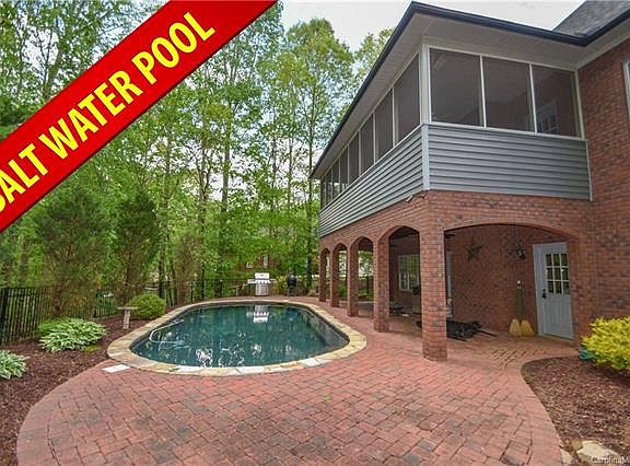 Estately Full brick custom built w/ salt water pool. Davidson address but Coxmill HS Shool District and Cabarrus County taxes! Almost 3000 sq ft living area, w/ 1981 sq ft unfinished plumbed basement, over 450 sq ft screened porch & 528 sq ft garage. Home sits on a 1 acre corner lot with mature trees. The backyard is ideal for entertaining with a salt water pool, brick pavers and a covered patio. Open floor plan, new carpet and fresh paint. Great room and Master both lead to the screened in porch. Surround sound throughout entire first floor. Great room with vaulted ceilings and stacked stone fireplace, Master on main with dual vanities, jetted tub, walk in closet with built ins. Kitchen with SS appliances, Double wall oven, new Kitchenaid Gas Cooktop, Granite counter-tops and hardwoods. Tankless hot water heater as well! Unfinished basement is plumbed and has endless possibilities. Must SEE! Located minutes from downtown Davidson.