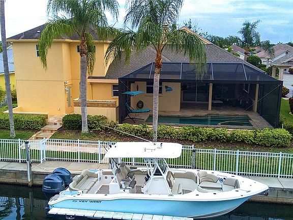 Under contract-accepting backup offers. Enjoy the ultimate waterfront lifestyle in this stunning 2-story residence in Bradenton! With its prime location take advantage of protecting your boat in fresh water while also being able to cruise to open water via the lift that provides Gulf access down the Manatee River, this property offers breathtaking water views, endless boating and fishing opportunities, and a tranquil atmosphere. The spacious interior features 4 bedrooms and 3 bathrooms, and the kitchen features granite counters, glass front cabinets, a gas range, and an island with a wine fridge perfect for entertaining. Enjoy the picturesque views from the expansive backyard, with a sparkling pool, patio, and outdoor kitchen. Don't miss this incredible opportunity to own a piece of paradise!