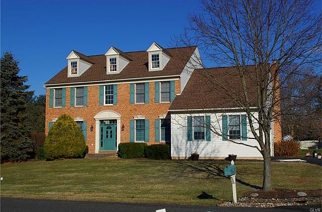 Stunning 4 Bedroom Brick Colonial in the heart of Southern Lehigh School District now available. Boasting over 2,700 square feet of living space, the original owners have kept excellent care of this home. Features include gas heat, Central AC, low taxes, full basement, skylights, trex deck, spacious and flat back yard, new roof in 2016, cathedral ceilings, and wood burning fireplace. Minutes from all schools and shopping in Center Valley, this home is in a cul de sac with 5 other homes. The floor plan showcases an open kitchen into the sunken family room where you can enjoy the cathedral ceilings and wood burning fireplace. The upstairs has 4 bedrooms including the Master En Suite with a large walk-in-closet, dual vanities, private whirlpool bath and glass stand-up shower. Sellers are sad to go but extremely motivated to sell.
