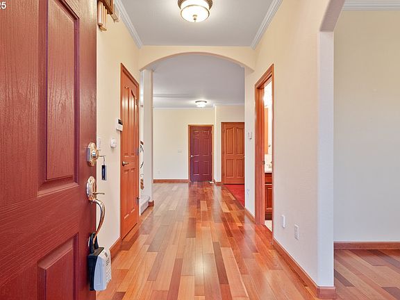 Fantastic University Park Location! Blocks from University of Portland Campus, Columbia Annex Park plus a beautiful view of Downtown Portland and the Fremont Bridge. Well appointed custom built home with attached oversized two car garage, off street parking for 3 cars. Full bath and bedroom on the main floor. Large open kitchen, gas appliances, 2 pantries, solid granite counters, expansive island with seating, real hardwood floors, central vacuum system, two washer/dryer hookups. Primary suite has wonderful view of Downtown Portland, double closets and soaking tub. Each bedroom has its own "WOW" feature. Petite fenced yard, low to no maintenance. Close to amazing parks and recreation.