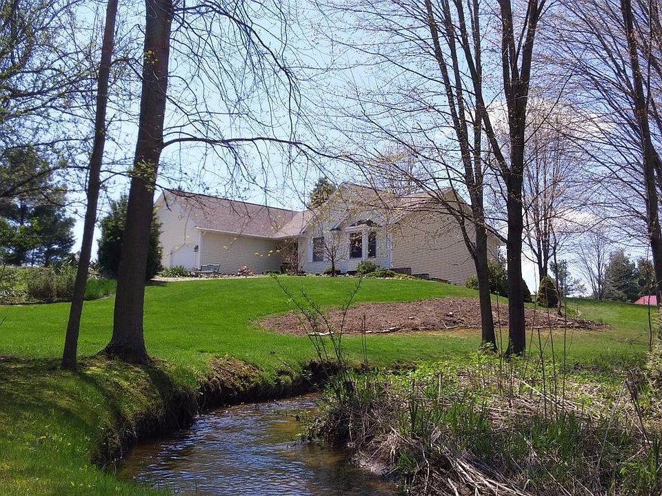 The home's name could be Riverwood Gardens!A Fantastic 4ac!Babbling creek/waterfall gently curving around hill of hardwoods.Landscape & gardens w/ rural feel. Built to blend w/the land, home emits quality & comfort!Finished walkout LL w/ rec room, bar, craft room 4th bed, den w/daylight window. Kitchen/dining w/newer hardwood, counters,Hickory cabinets, desk, backsplash & snackbar. 2x6 construction,Energy eff. Insulated foundation,Andersen windows & blinds, furnace, appliances. Insulated Florida room. Vaulted livingroom, master bed w/ private bath & jetted tub. 24x40 heated/finished polebarn w/ 220 & steel roof. Updates incl: roof,siding,garage doors,paint,sunroom,kitchen,floors,2012. PLUS Paved road, natural gas, Low taxes & utilities! WOW