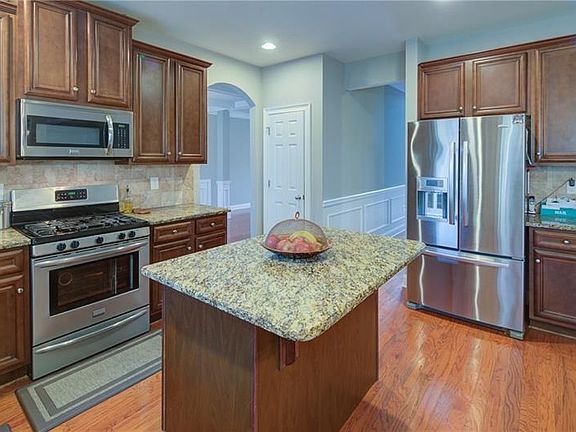 - Kitchen Features: Cabinets Stain, Eat-in Kitchen, Pantry, View to Family Room, Stone Counters, Kitchen Island