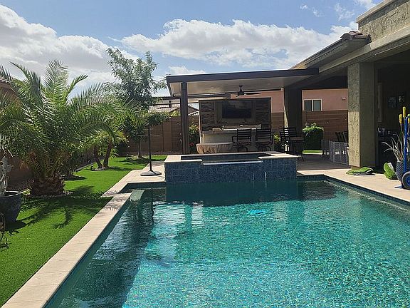 3350 sf single level on a corner lot. 3 car garage, 5 BR, 2.5 BA upgraded floors and kitchen. Heated pool and Jacuzzi with travertine decking 1200 SQ FT, and landscaped front and artifical grass in backyard. Built in BBQ with fridge and sink with pergola $3400 water softening system with reverse osmosis. Three zone damper controlled heating and cooling. Very efficient home