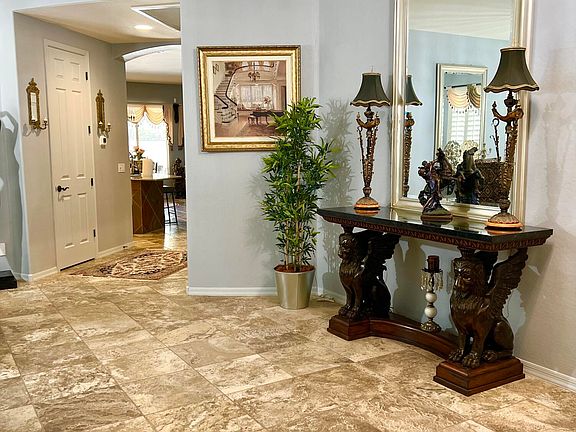 Beautiful single level 4 bedroom, 3 bathroom with bright and open floor plan. Highly upgraded stone/tile flooring and new paint. Granite countertops throughout and shutters. The relaxed living & dining rm features stacked faux stone over the fireplace. Large Master bedroom has a big walk-in closet. Generous master bathroom with large soaking tub and The separate shower that recently upgraded, Formal living room with large entrance and Dining room. kitchen with tons of updated cabinets and huge island. Large backyard features a stone pavers and gazebo, Misting system, water fountain, new built-in barbecue and bar,RV gate with slab cement parking. 3.5 care garage with new cabinets. Wouldn't last long! Bring your buyer!