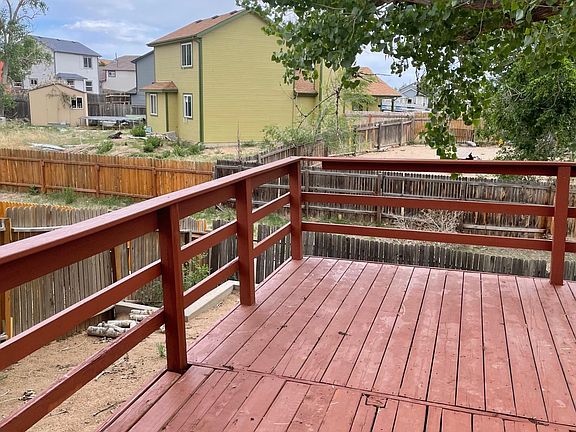 Freshly painted home in a great location! Three blocks from Wildflower Park with access to the Sand Creek Trail and an easy walk to Wildflower Elementary. Super close (10 min) to the airport and Peterson, but not under the runway flight paths. 20 minutes to Fort Carson. Quiet neighborhood with great neighbors, including no backyard neighbors for increased privacy. There is little to no yard maintenance so you can have fun on the weekends instead of watering and mowing. The home features a large upstairs master bedroom with a big walk-in closet, and two smaller bedrooms upstairs as well. Front living room with an additional TV room at the back of the house. Washer/dryer hookup on main level (w/d not provided). Ceiling fans in every room. Great 2-car garage with room for toys and tools! Adding photos but also available by checking this address on Zillow for pre-purchase photos. Fresh ivory paint throughout (no more lavender) and freshly painted deck! Video tour available. One year lease. Renter pays for utilities. No smoking allowed. Last month's rent due at signing. Pets permitted on a case by case basis. Preference given to renter able to perform basic maintenance (furnace filter and smoke detector battery replacement, tighten screws, etc.)