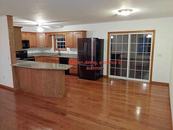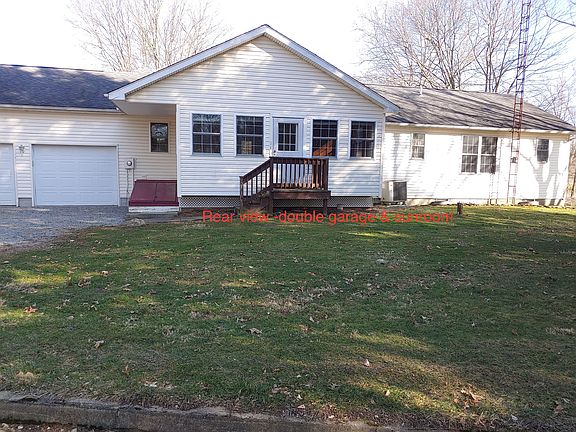Spacious almost new ranch home with many upgrades including hardwood floors, new bedroom carpeting, new appliances and Kraftmaid oak cabinetry, on beautiful wooded country site located in top rated United Local School District. Property includes always rented 2 bedroom 2 garage unit and dog kennel. Current owner lives on adjoining farm and will be your neighbor.