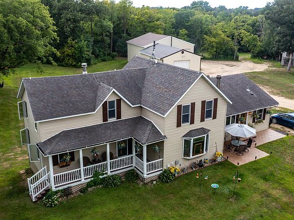 Welcome home to this updated Country Farmhouse with 4000 sq ft of living space on ICF foundation on 10 private wooded acres with large heated shop(2720 sq ft) 2 miles from Zumbrota. Enjoy the updated large kitchen with dining area, huge main floor master suite with bath you'll fall in love with featuring double sink, huge walk in shower with overhead rain forest sprayer, large main floor family room with fireplace, main floor laundry, upper level features 2 bedrooms, den and bath, lower level plumbed with in floor heat and ready to be finished with 2 more bedrooms, bath,office and large walk out family room area. The shop has it's own bath and office area, very useable extra shed with concrete floor and loft area for kids to explore. Lots of wildlife, trails and room to roam for everyone to enjoy for many years to come. Don't be fooled by the age this home, the owners have meticulously updated and decorated the home in the past 5 years and shows like new!!