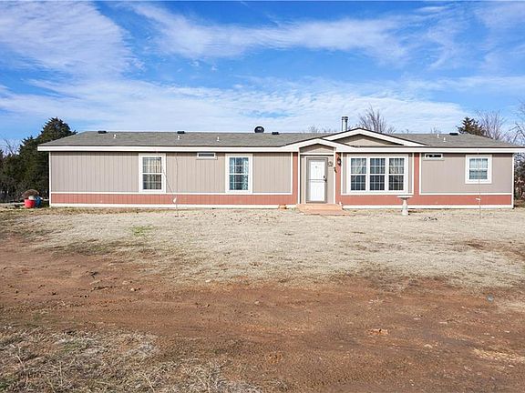 Gorgeous view of the valley and so close to town! This home has had master bathroom remodeled recently to accomodate a wheel chair. New paint in many areas. The masterbedroom is large and has a seperate office/sitting area. 2 living areas, and a huge eat-in kitchen. This land is ready for your horses too! The Palm Harbor modular home will achieve Cherokee mortgage assistance and VA or RD loans. A lot of home and acreage for the price!