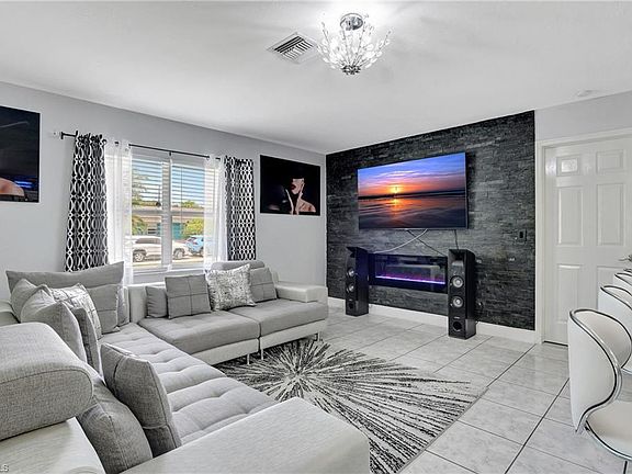 Welcome to this beautifully remodeled 4 bedrooms, 3 bathrooms home situated on a wide lot in a desirable area of Golden Gate City. Just two blocks from Winn-Dixie supermarket, shopping plaza, restaurants and minutes away from I-75. The kitchen feature a complete remodel with huge island and custom-built cabinetry. LED light throughout. In the living room area one of the walls is adorned with beautiful black decorative stones with a fire pit on it. Roof replaced in 2021 and also Solar panels where installed at the end of 2021. The patio is spacious with plenty of room to add a pool and has several fruit trees. Other fixtures include security cameras, alarm system, and smart door lock. Hurry up! Don't miss the opportunity to own this awesome property!