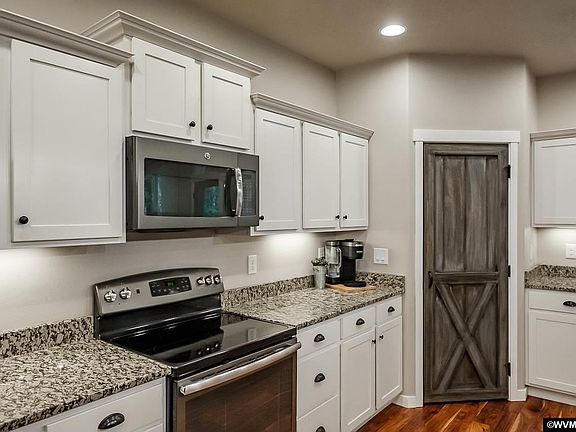 Accepted Offer with Contingencies. Stunning Country Place on just under 1 acre outside city limits! Well organized home w/gorgeous Acacia engineered hardwood flooring. Solid Alder doors. Bright & beautiful kitchen w/island seating, granite counters & walk-in pantry. Office off entry w/built-ins. Living room woodstove. Bonus rm. Master w/walk-in closet, shower & separate tub. Covered deck to enjoy treed setting and huge yard!