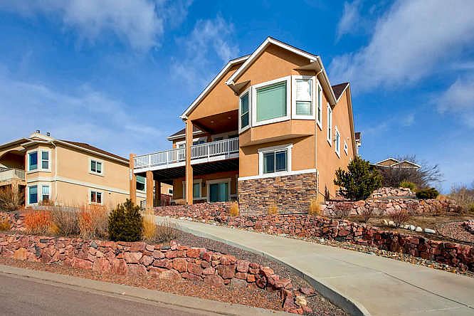 Stunning home with some of the best views in town! Main level living with views of Pikes Peak and the entire front range from your kitchen, living room, master bedroom and basement. The kitchen features custom cabinets, granite tile countertops, stainless steel appliances, island with additional sink, panty and recessed lighting, and walks out to a large wraparound deck with unobscured views of the Front Range and Pikes Peak. Master bedroom with cathedral ceiling, 2-way fireplace and windows centered on Pikes Peak,