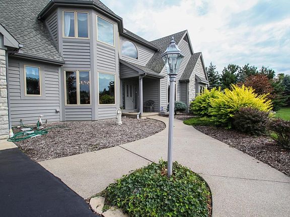 This stunning home is waiting for you! This 4 bdrm, 2.5 bth home features vaulted ceilings w/ beautiful crown molding & trim work throughout. As you enter, a fantastic living rm & dining rm are immediately inviting. The lovely foyer opens up to a huge great rm w/ soaring ceilings, fireplace, beautiful windows, & woodwork. The upgraded kitchen boasts top of the line cherry cabinetry, wood flrs, corian countertops & more. FF master is amazing in size and finishings. The den boasts unbelievable woodwork & charm. Every bedroom is of upgraded woodwork & size. The finished ll is perfect for extra entertaining w/ extensive space & unfinished space for storage w/ walk out. Detached garage offers addit'l storage & more. The large private yard is amazing w/ covered porch to enjoy! A must see!