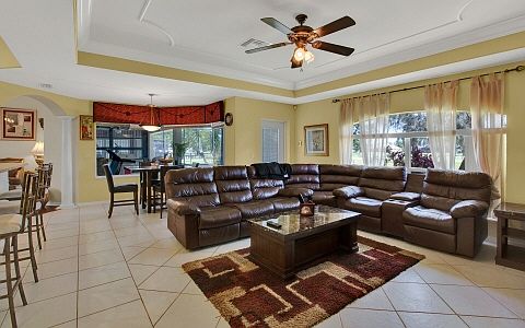 Welcome to your dream home nestled among the beauty of Turtle Run golf course. This lavish home offers 4 bedrooms 2.5 baths, bonus room, and extra large lanai. Newly installed granite counters with white cabinets, breakfast bar and beautiful eat in kitchen with fixed glass golf course. Guest bedrooms are split from master and are generous in size. Large entry and formal dining area in front. 1/2 bath has patio access. Many upgrades include 10ft ceilings,new A/C in 2016,new roof in 2017,new wood flooring, and many more. Must see to appreciate! Call today for your personal tour.