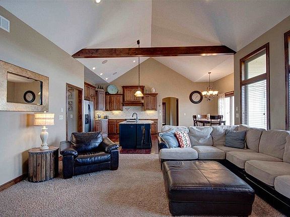 Wait till you see this turnkey home with real stone and stucco exterior in this desirable Cul-de-sac that backs up to a wooded field. It features an oversized insulated garage with/insulated doors. (18ft double door and 10ft 3 rd car) with extra wide driveway. Open floor plan. Full security system and the whole house is audio. Faux beams in the living room with fireplace, custom built-ins, hardwood floors, and Alder trim throughout. Stunning kitchen with breakfast bar and gorgeous oversized pantry. Rustic beech cabinets and granite counter tops. Master bed suite features bath with oversized shower and 5ft tub. Huge walk in closet with shelving. 2 more large beds with bath. Unfinished walkout basement is ready for you with 2 bedrooms (one another Master Suite) wet bar and plumbed for 2 baths. This home is a must see! Call for you private showing today! Bonus: 95% efficiency HVAC system and Quaker brand Low E windows