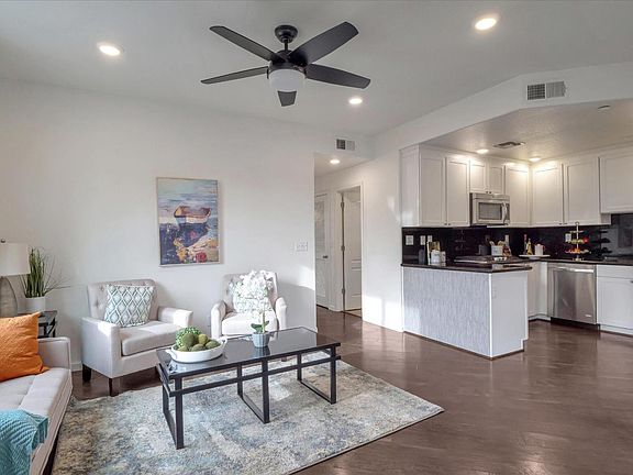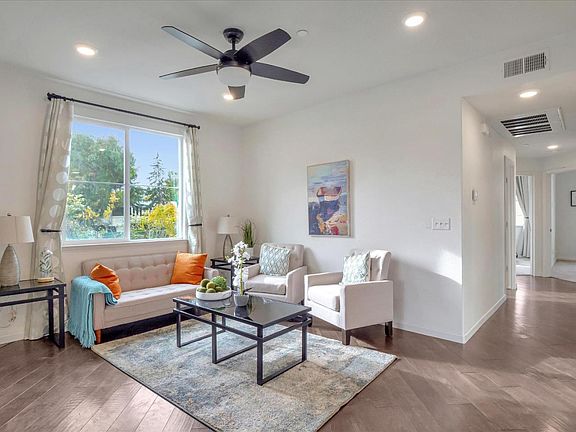 This beautiful and elegant 3 bed 2 full bath home is a corner unit with views from all rooms and balcony. North East facing home with lots of natural lighting with ventilation, Slab Granite counter tops, soft close designer cabinets, upgraded stainless steel appliances in the kitchen and inside Laundry. Wooden floors in the living area, kitchen and a bedroom. Extra large 2 car tandem garage with room for storage. The home is in the Park Central Community of Bishop Ranch and centrally located, in close proximity to City Center, schools, dining, entertainment and Bishop Ranch. Only few steps away from the Iron Horse Trail. TOP RATED SCHOOLS. Suitable for All Cash buyers/investors as well.