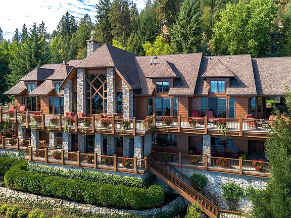 Majestic Lake Coeur d'Alene Waterfront Estate! Nearly 400 feet of beautifully landscaped grounds covering over 1.5 acres. Nine bedrooms, nine full baths and two half baths, ensuring plenty of room and privacy for everyone. The views, privacy, and extensive landscaping must be seen to be fully appreciated. True entertainers/chefs kitchen, vaulted ceilings, and extensive decks allow one to truly live the best lake lifestyle. Tram and/or Montana Stone walkway access to three slip boat dock and level waterfront patio. No detail or feature was overlooked in the design of this beautiful home. If you are looking for the ultimate Lake Coeur d'Alene getaway, this is the one. Short drive to downtown Coeur d'Alene, COE and Spokane airports.