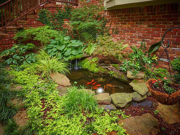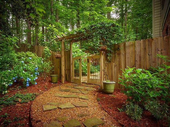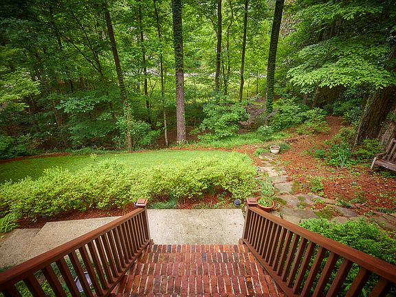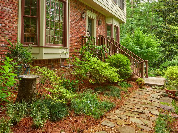 This well-constructed home in a quiet neighborhood is a secluded treasure with naturally-inspired gardens and landscape. Walk past the peaceful Koi Pond up to your front door and into the serenity of home. Foyer at entrance allows comfortable flow into living and dining areas showcasing unique hand-finished wall treatments. Entire main level has 9' ceilings, large kitchen features granite countertops, stainless steel appliances, gas cooktop, double oven and has an adjoining breakfast nook with view of wooded back yard. Hardwood floors are in living room, dining room, kitchen and foyer. A conveniently located powder room and large coat closet are also on the main level. This home's den has beautiful wooden library paneling and a wood-burning fireplace, making it a comfortable space for family to gather. Just off the den is a beautiful shade garden designed by the Master Gardener homeowner and featured in Southern Living magazine. The patio's wraparound flagstone surface and private view of the woodlands is a birdwatcher's delight, and small fish ponds in both front and back add to the magic of this incredible space. Central stairwell leads up to four spacious bedrooms, large master suite has plenty of room for comfortable reading chairs, en suite bathroom has walk-in closet, double vanity and linen closet. Second bedroom has newly decorated private bath, wide closet, and plenty of space. Two other bedrooms share Jack-and-Jill bathroom with double vanity and sliding glass bath enclosure. Upstairs landing has linen closet and easy pull-down access to large well-lit attic providing immense storage space. A large portion of the two-bay garage/basement has been finished to provide a perfect area for home theater, recreation space, craft/hobby center, office, or additional bedroom. Finished space has a separate room with locking door for added security. Garage area has sectioned-off storage room with plenty of shelving, easy access to water heater and lower level's furnace/blower unit. Three separate zones of garage area have motion-detecting lights, giving welcome convenience and safety, especially if hands are full or when entering after dark. This is a well-maintained and loved home, both up and downstair Carrier central A/C units, furnaces, and blowers were replaced approximately five years ago, along with a completely replaced 30-year roof, gutters and ridge vent. The extremely quiet and efficient Miele dishwasher was installed three years ago. A new GE washer was replaced less than two years ago. A visit to this home confirms the care and attention it has received from present homeowners, and their flexible schedules make it easy in most cases to show the home with short notice and at just about any time of the day.